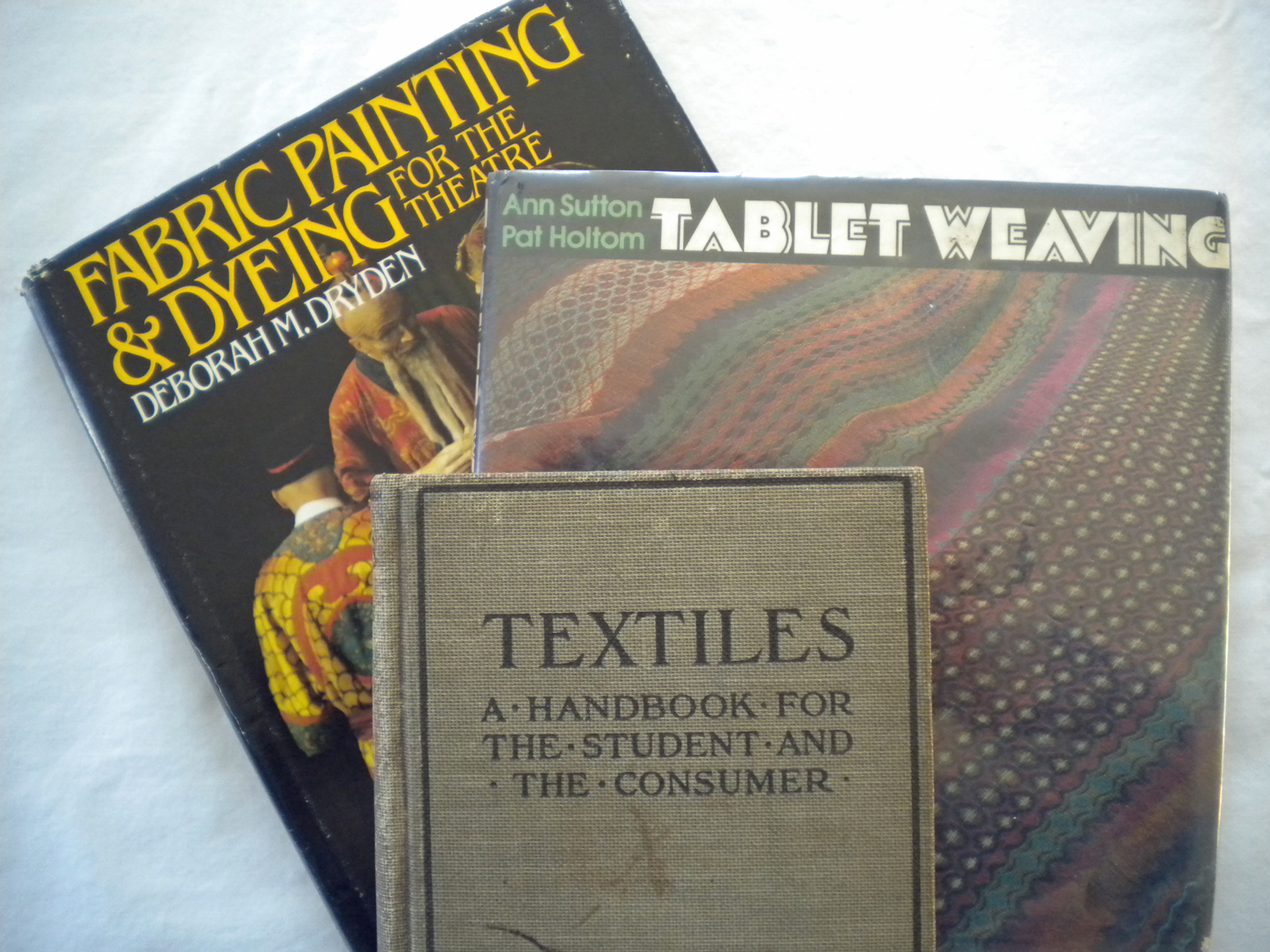 I love old books! It’s a trait I get from my mother, who loves nothing better than browsing through the thrift store book bins, looking for treasures. Whenever she finds anything remotely related to weaving, she picks it up for me. Sometimes these finds introduce me to different techniques, like the Ann Sutton/Pat Holtom classic Tablet Weaving. Sometimes it’s just a really old book that looks interesting, like the 1917 edition of Textiles: A Handbook for the Student and the Consumer by Wollman and McGowan complete with somebody’s handwritten class notes. She got that one for $1.00.