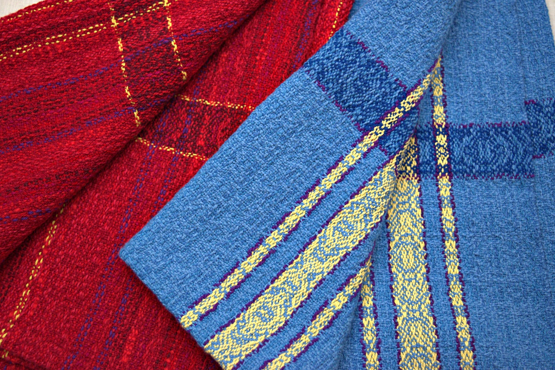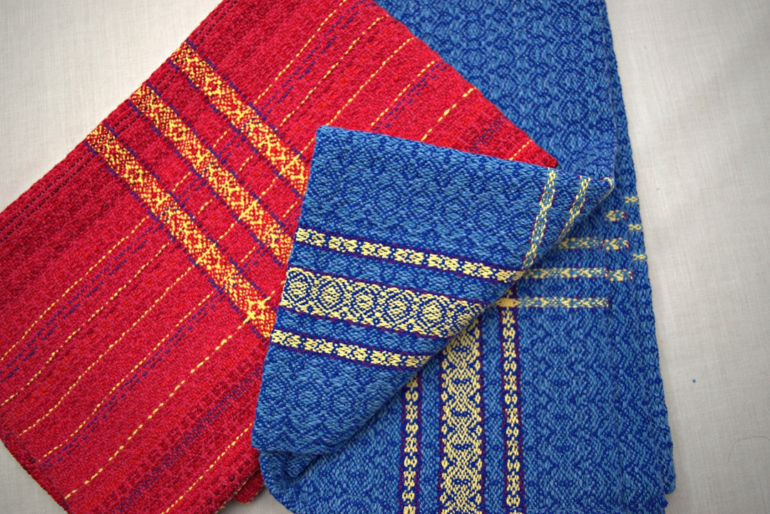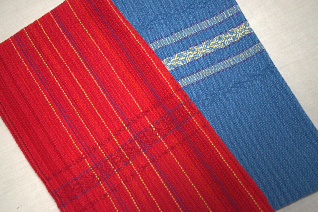 The blue towels came off the loom a couple weeks ago and before the last shuttle thrown, I already knew a red warp would follow.