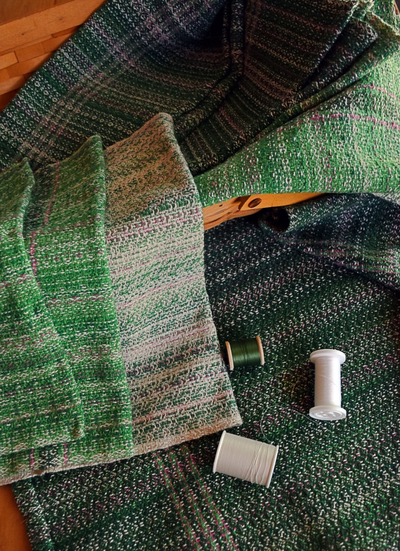 There’s the basket of cottolin towels woven in…hmmm…maybe May? They are ready to be hemmed, just waiting.