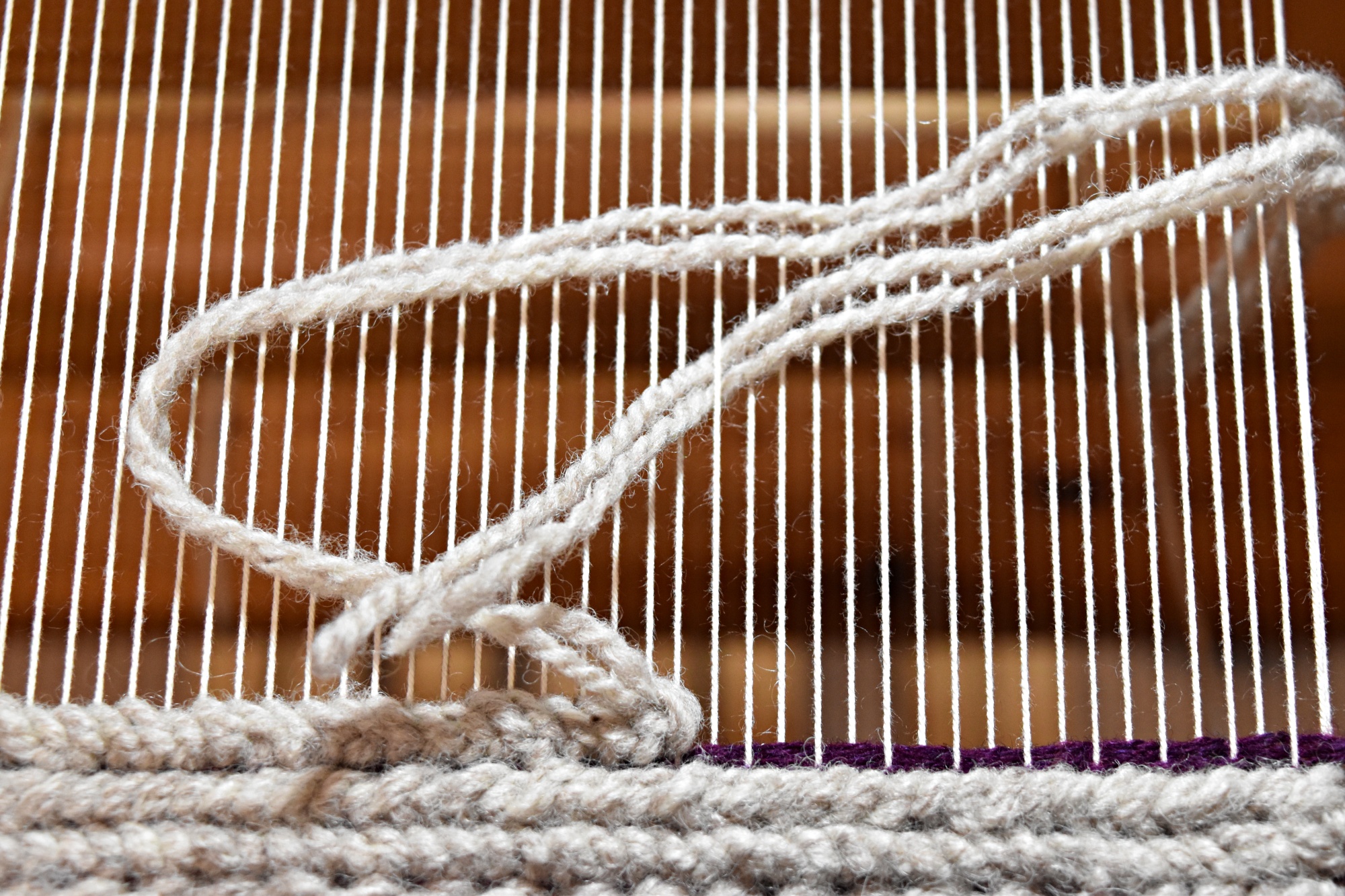 For the life of me, I could not flip the technique to move left to right. My wraps kept going in the wrong direction, which was apparent when the v’s didn’t form. Time to walk away from the loom, and think about what my hands were doing.
