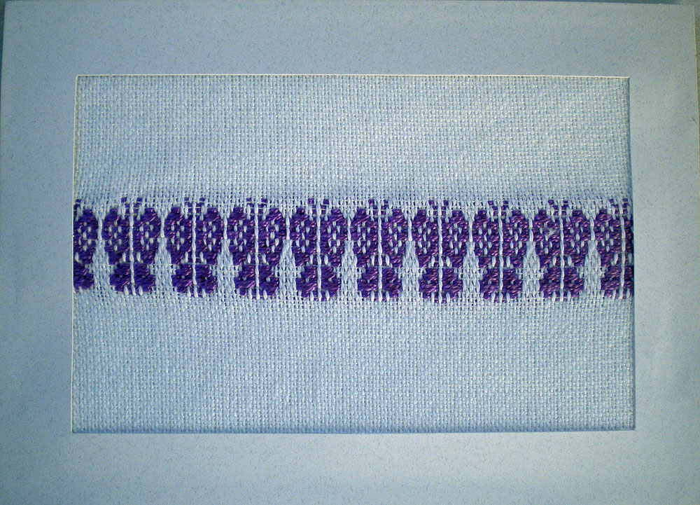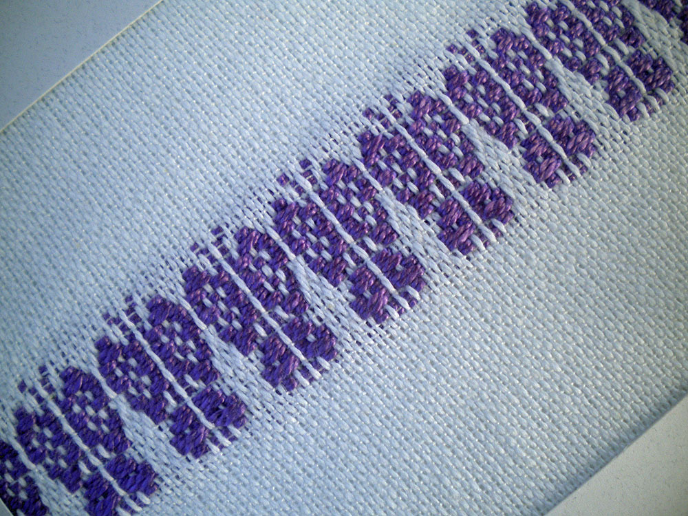 This 5” x 7” notecard holds a handwoven cotton panel of butterflies to brighten the day of your favorite someone. Butterflies in royal purple cotton are woven on a white plain weave background. The card is blank inside so you can personalize your greeting. Envelope is included. $10