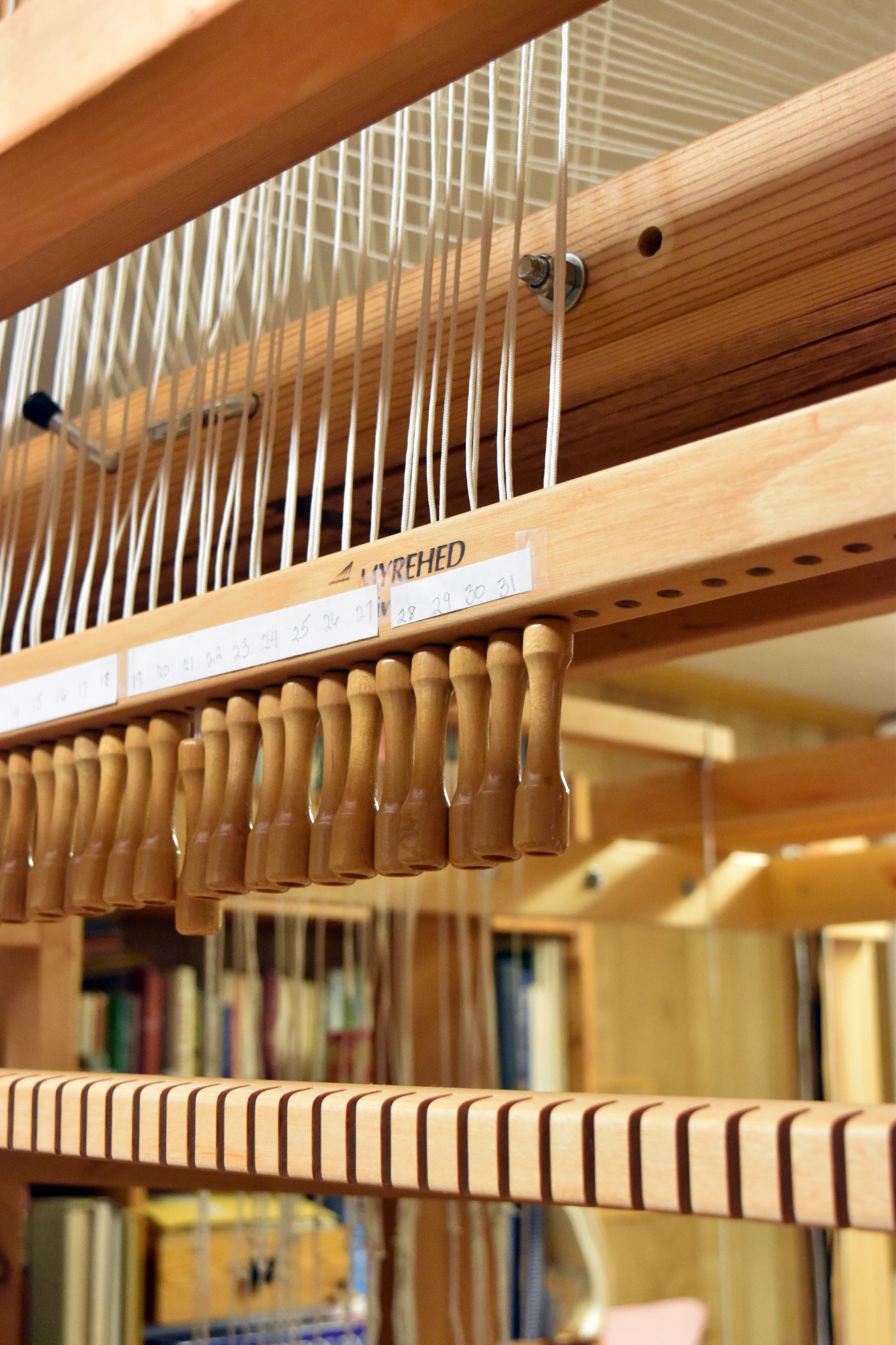 All this time, the ground shafts operated as a counterbalance set-up because the existing countermarche did not fit within the drawloom frame. I was okay with counterbalance, but I really missed the stability and flexibility of countermarche weaving. I dreamed of adapting the countermarche to fit the drawloom.